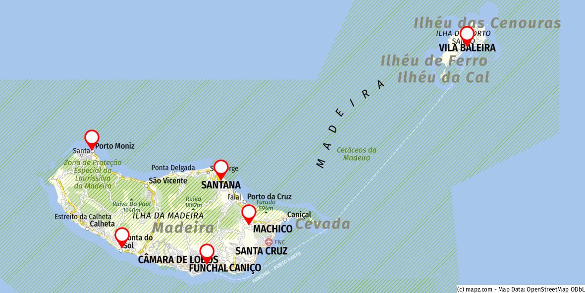 • Alle Transfers gemäss Ausschreibung auf Porto Santo und am Ende der Reise in Funchal